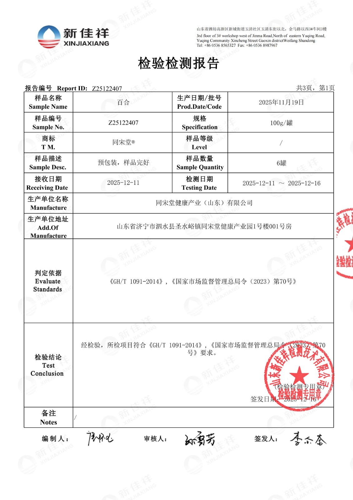百合检验报告